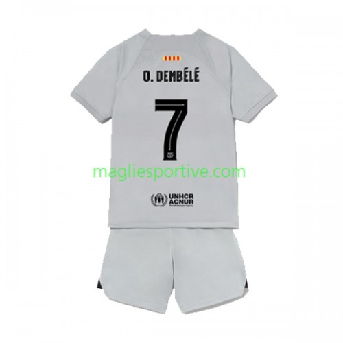 Completo Calcio Barcellona Ousmane Dembele 7 Bambino Divisa Terza 2022-2023