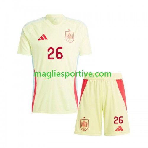 Completo Calcio Spagna Pedri 26 Bambino Divisa Trasferta Euro 2024
