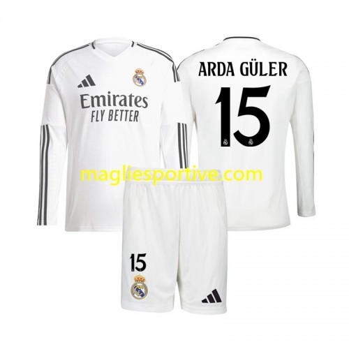Completo Calcio Real Madrid Arda Guler 15 Bambino Divisa Prima 2024-2025 ML